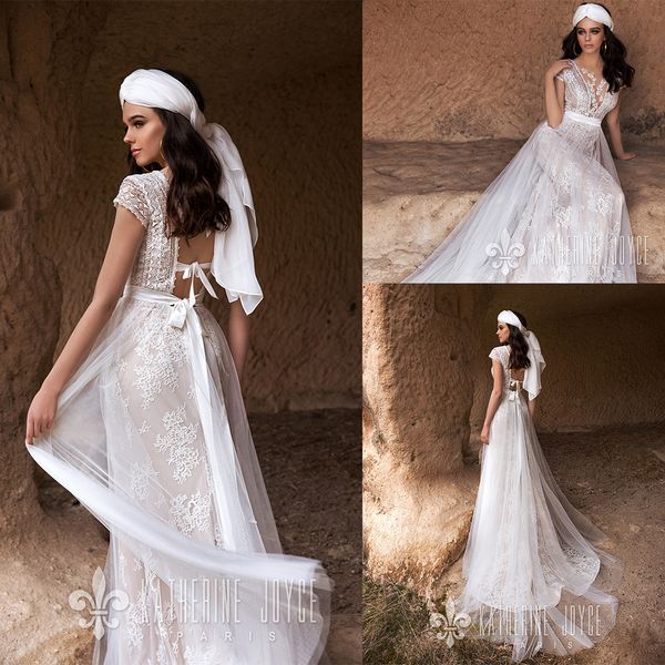 2020 Mermaid Wedding Dresses With Detachable Train Scoop Neck