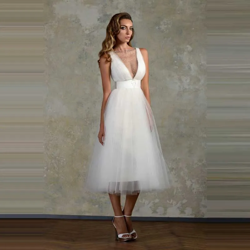 Berydress Sexy Amazing White Bridal Vestido Spaghetti Mid Calf