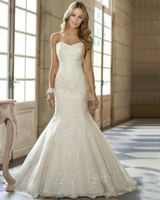 Romantic Style Appliques Sweetheart Ivory Lace Mermaid Wedding