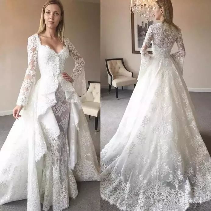 2019 Vintage Lace Mermaid Wedding Dresses Long Sleeves Two Pieces