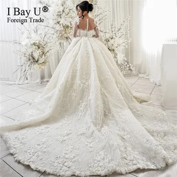 Off White Handmade 3d Flower Lace Wedding Dress Long Sleeve 2020