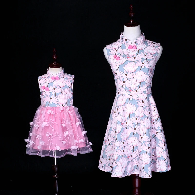 Mother Daughter Dresses Princess Wedding Clothes Pink Family