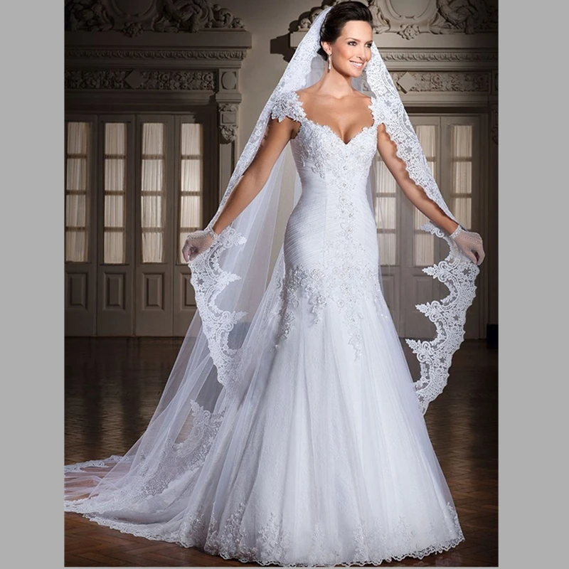 2015 Elegant Mermaid Vintage Long Wedding Dresses White Lace