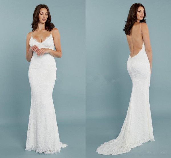 2020 Sexy Beach Wedding Dresses Mermaid Spaghetti Full Lace Sweep