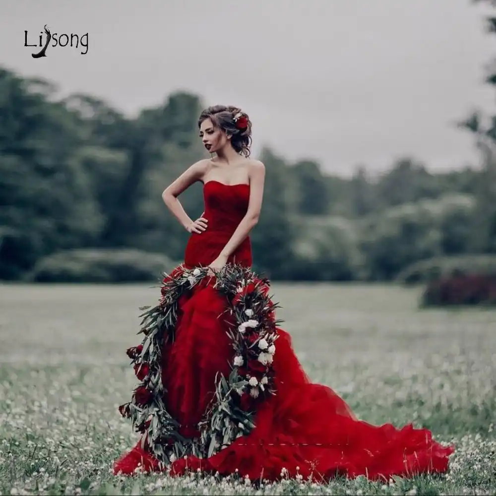 Christmas Themed Wedding Ideas Red Wedding Dresses Lace Mermaid
