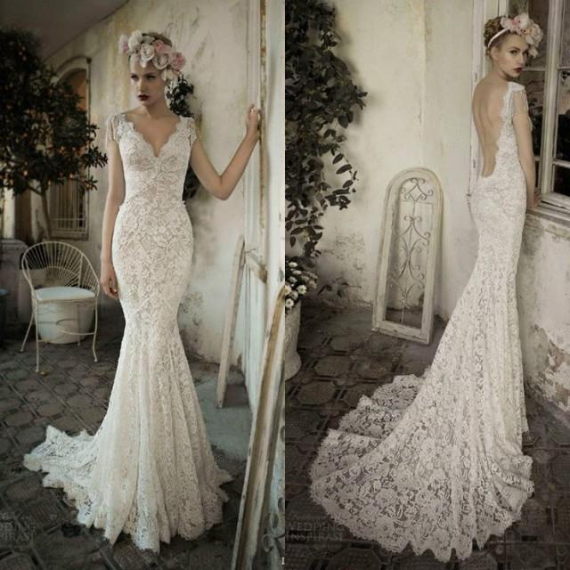 Fully Lace Plunging Back Sheath Wedding Dress Kleinfeld Bridal