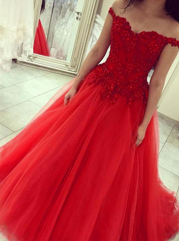 Plus Size Red Prom Dress Long Elegant Tulle Lace Appliques