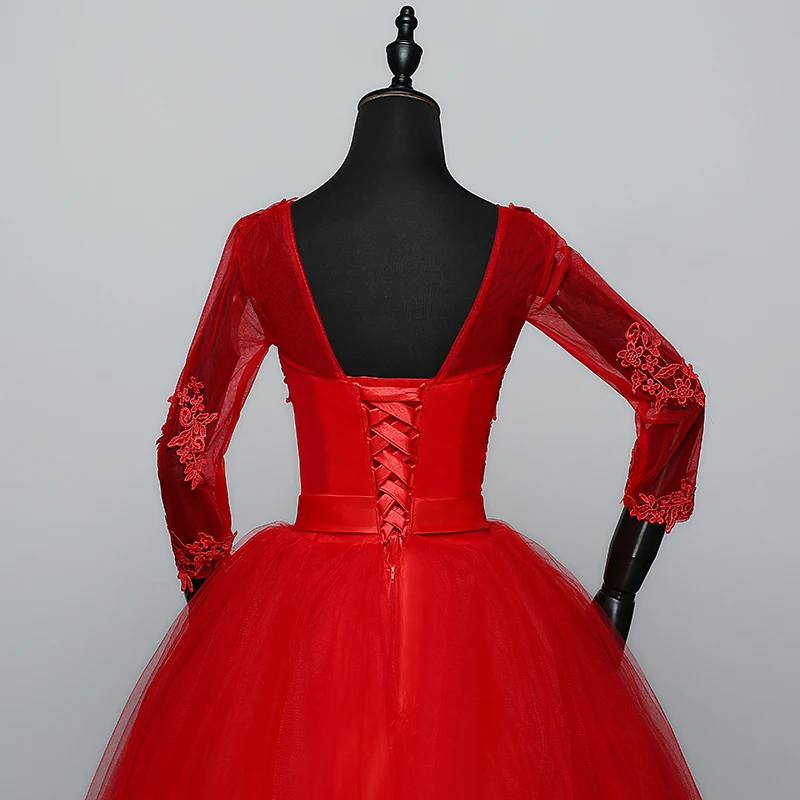 Long Sleeve Red Wedding Dress Plus Size Bridal Gown Floor Length