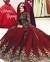 Saudi Arabic Red Long Sleeves Muslim Wedding Dress Ball Gown High