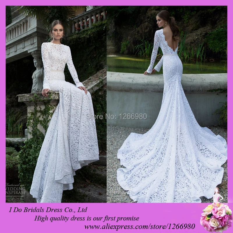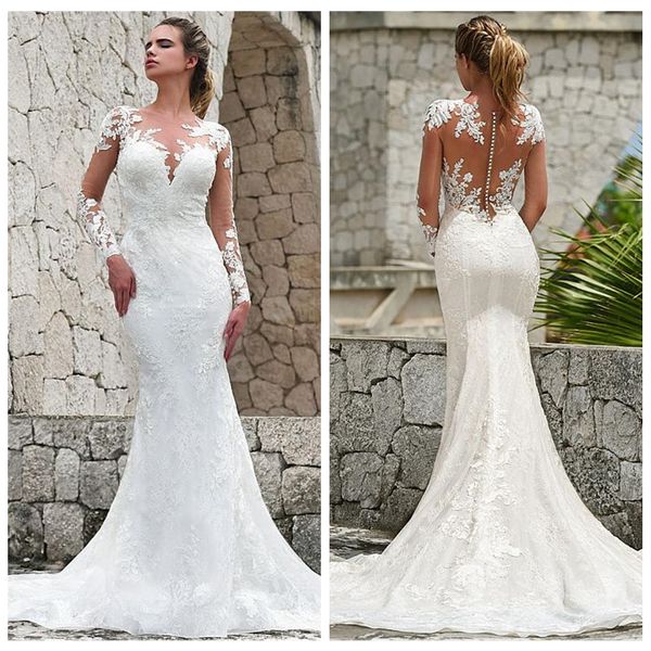 Fashion Scoop Mermaid Lace Wedding Dress See Through Bohemian