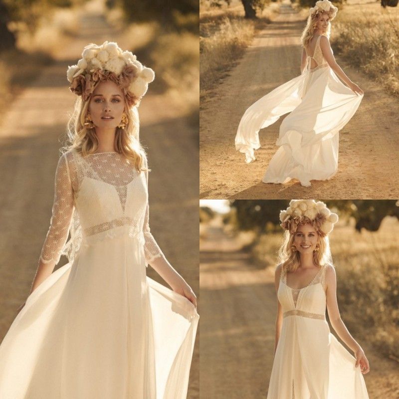 Discount New Country Boho A Line Wedding Dresses With Jacket Sheer