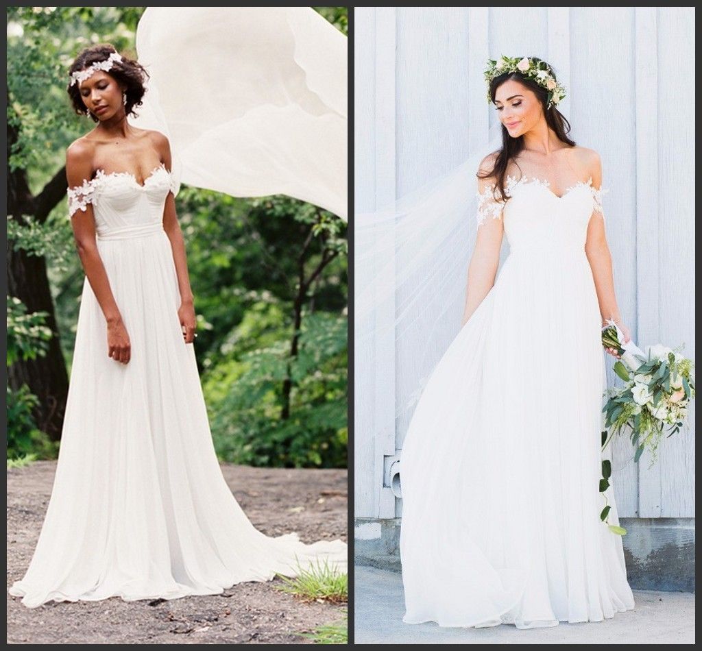 Discount Off Shoulder Neck Simple Wedding Dresses Long Appliques