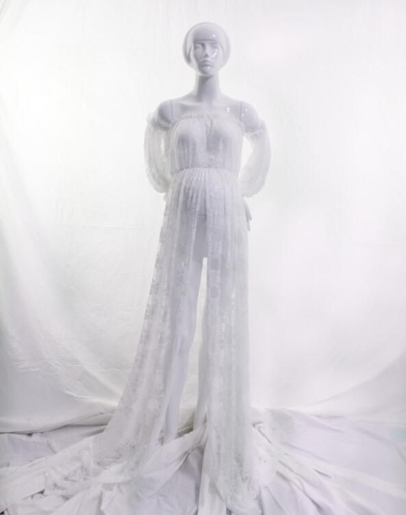 Stretchy Lace Maternity Dresses Ruffles High Split Front Maternity