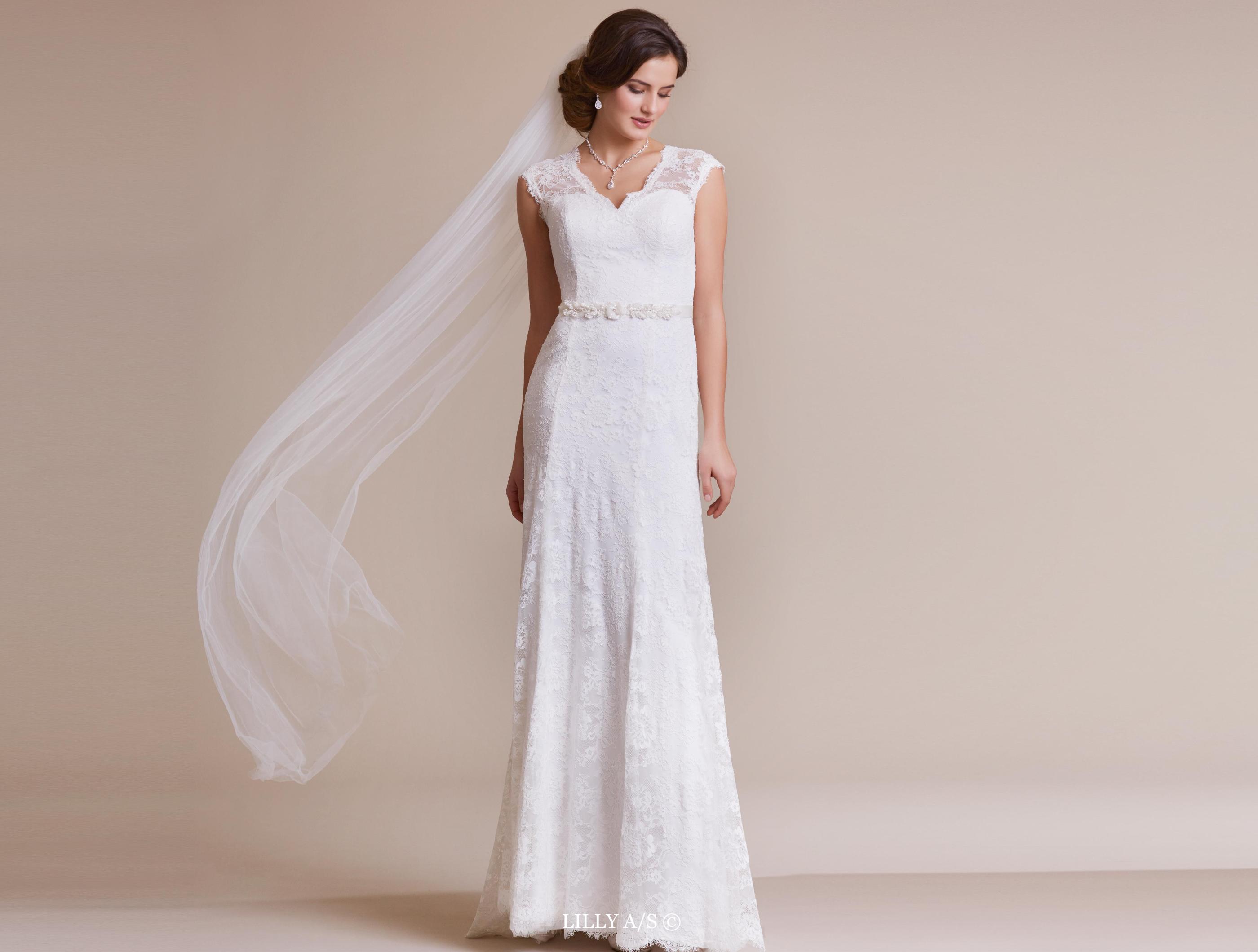 Stretchy Lace Fitted Bridal Gown Comfy Jersey Knit Lining Wedding
