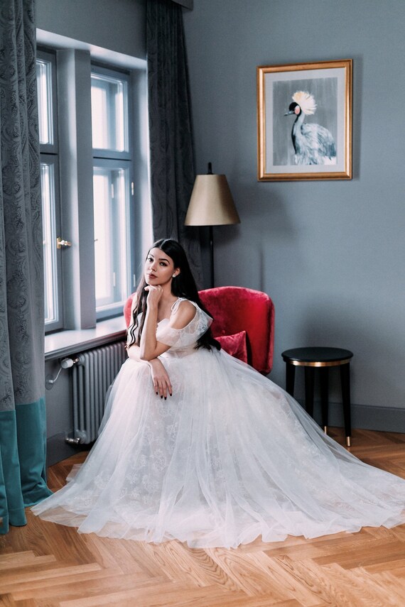 Romantic Boho Style A Line Sweetheart Shape Long Train Layered Etsy