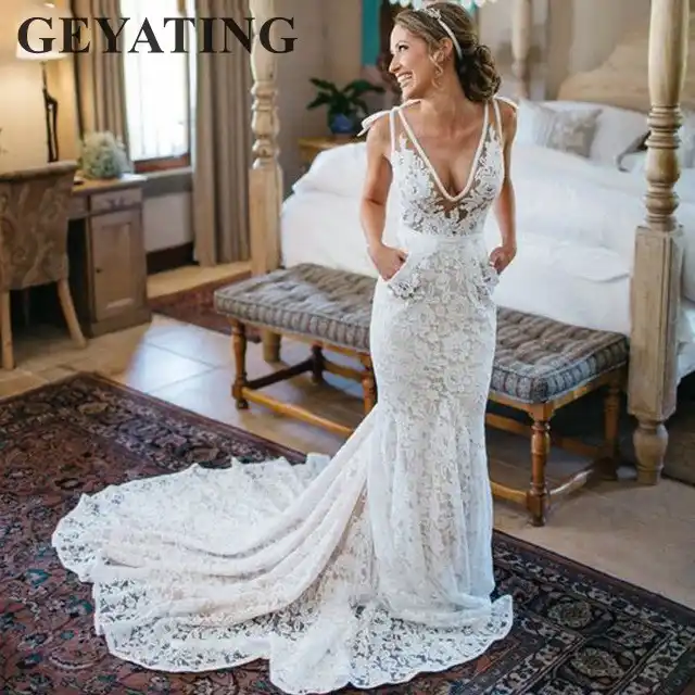 Vintage Lace Hippie Mermaid Wedding Dress Boho 2019 Vestido De