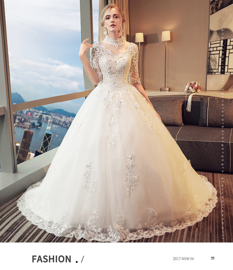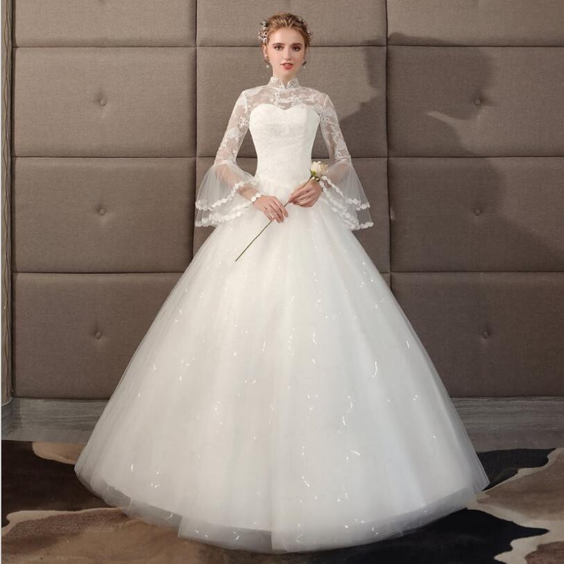 Stand Collar Lace Long Sleeve Wedding Gown Evening Dress Shopee