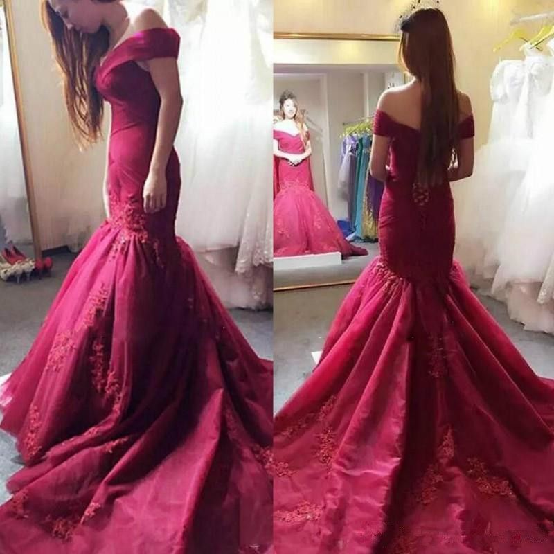 Burgundy Mermaid Wedding Dresses 2017 Off Shoulder V Neck Lace