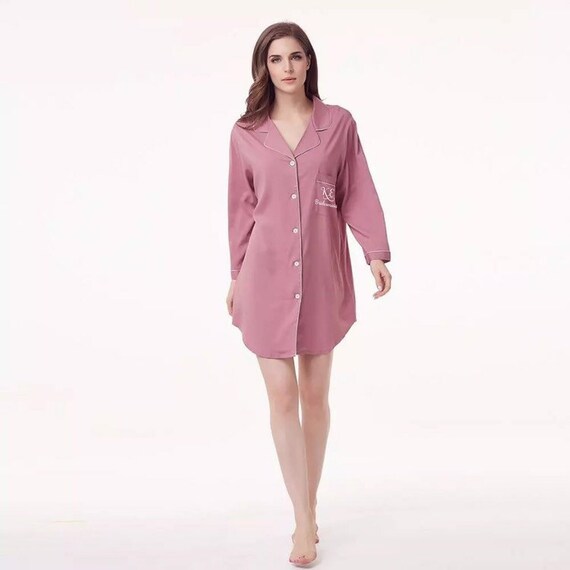 Personalised Bridal Night Dress Shirt Nighty Button Up Shirt Etsy