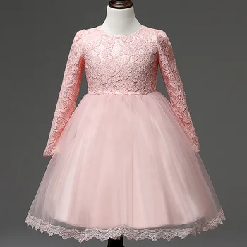B12081a Children Little Girl Princess Long Sleeve Lace Party