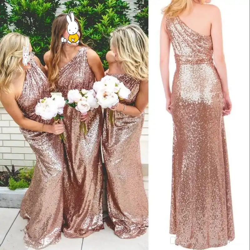 Automan Rose Gold Sequins Bridesmaid Dresses Long Wedding Guest