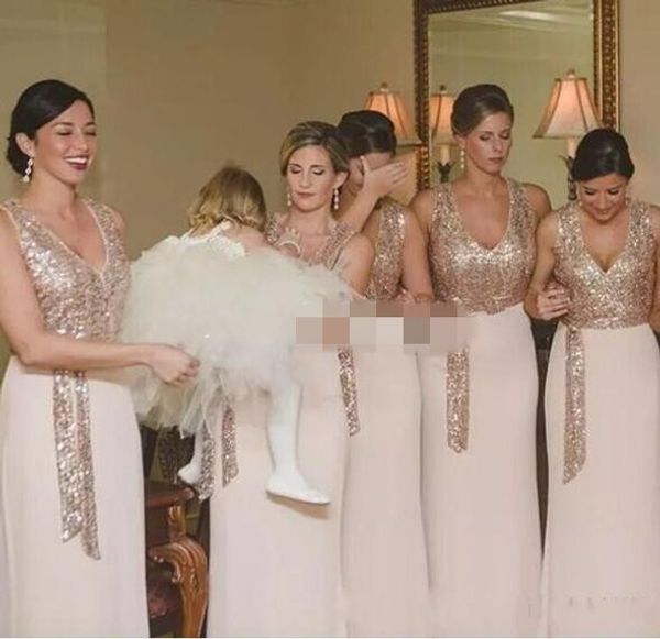 Vestidos Largos Rose Gold Sequins Bridesmaid Dress Sleeveless