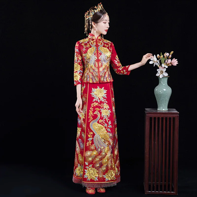 Chinese Style Women Toast Clothing Traditional Embroidery High