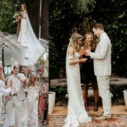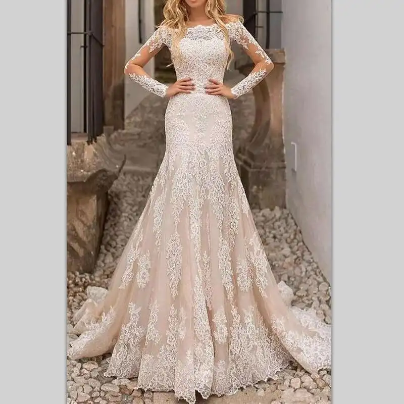 Vintage Mermaid Wedding Dresses Champagne Off Shoulder Lace