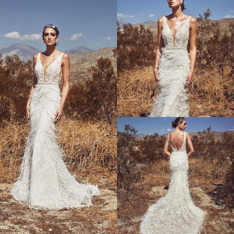 Calla Blanche 2019 Mermaid Feather Wedding Dresses Sexy Deep V