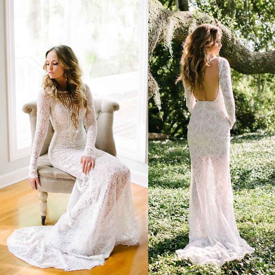 Fw1252 Vintage Lace Long Sleeves Sheath Wedding Dresses 2016with