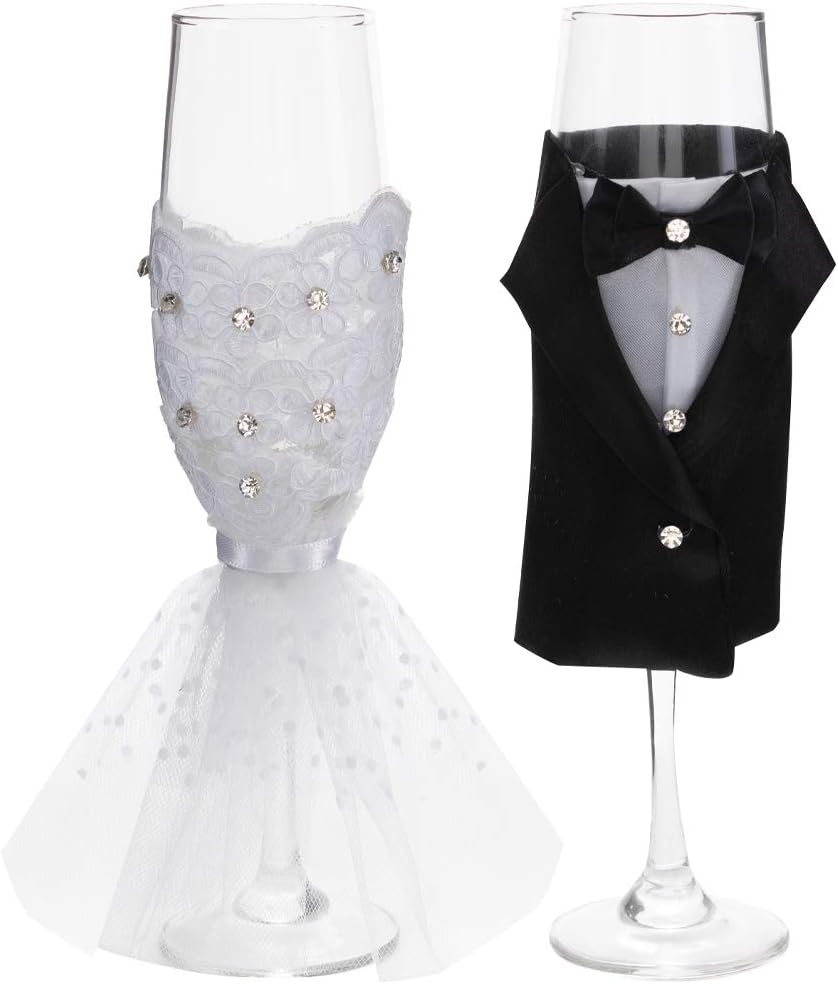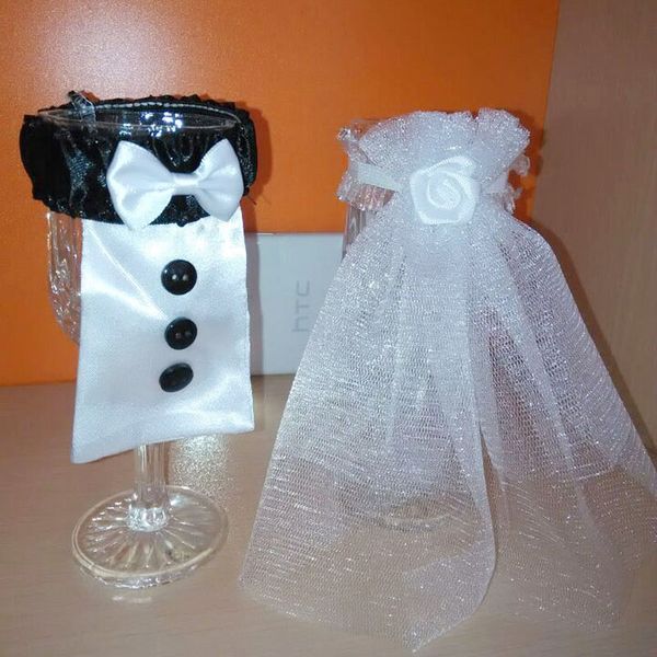 2 Pcs Lot Wedding Decorations Bride And Groom Dress Wine Glass