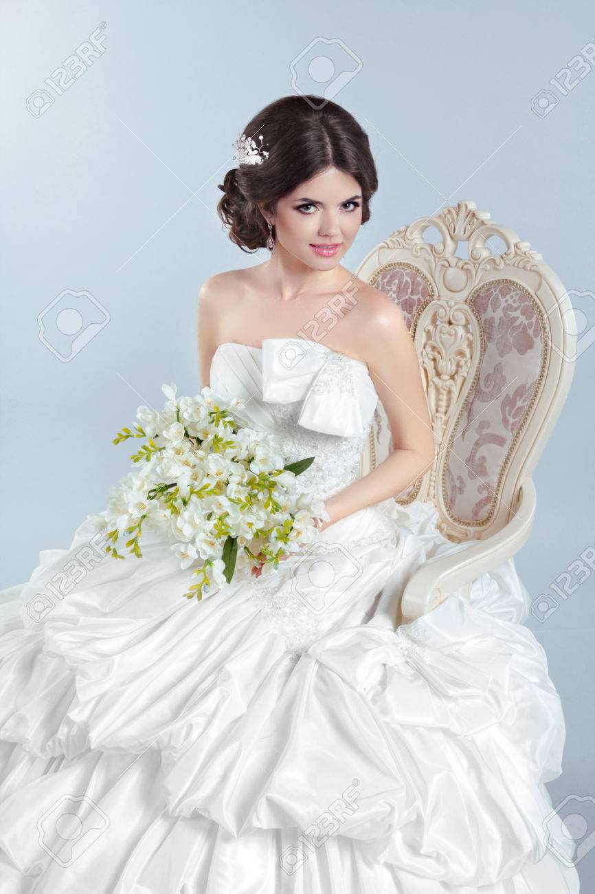 Beautiful Bride Girl Wearing In Wedding Dress With Voluminous