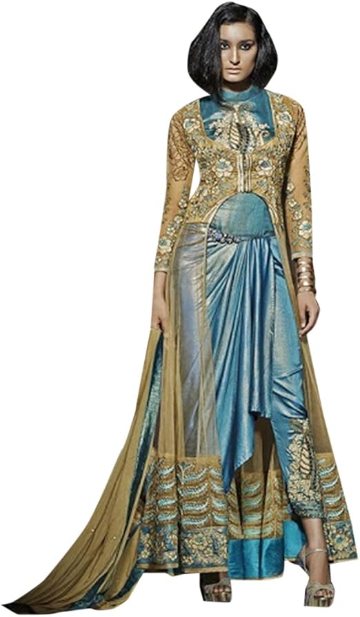 Amazon Com Bollywood Stylish Pattern Wedding Blue Gown Anarkali