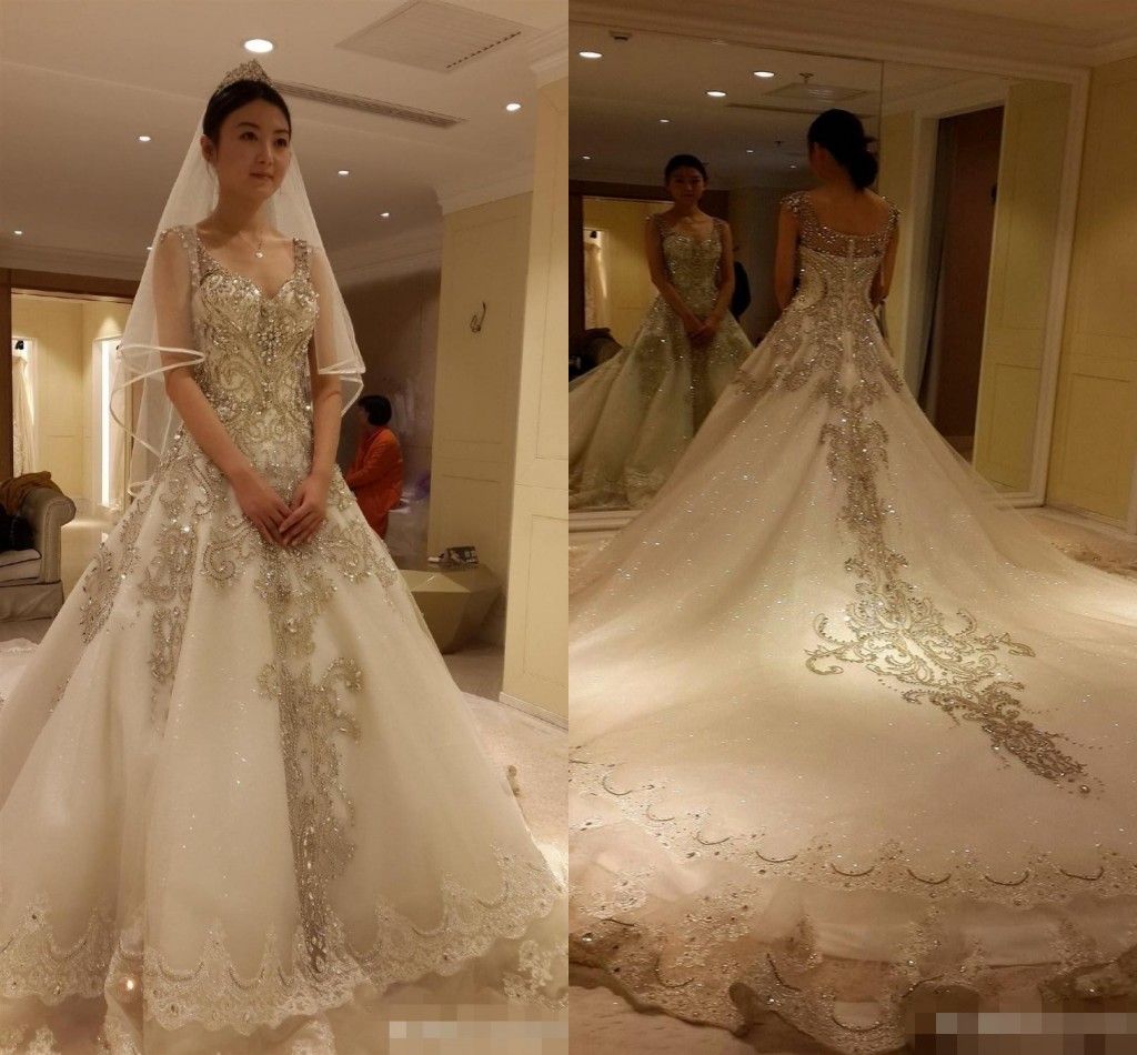 Luxury Cathedral Train Cinderella 2019 Ball Gowns Wedding Dresses