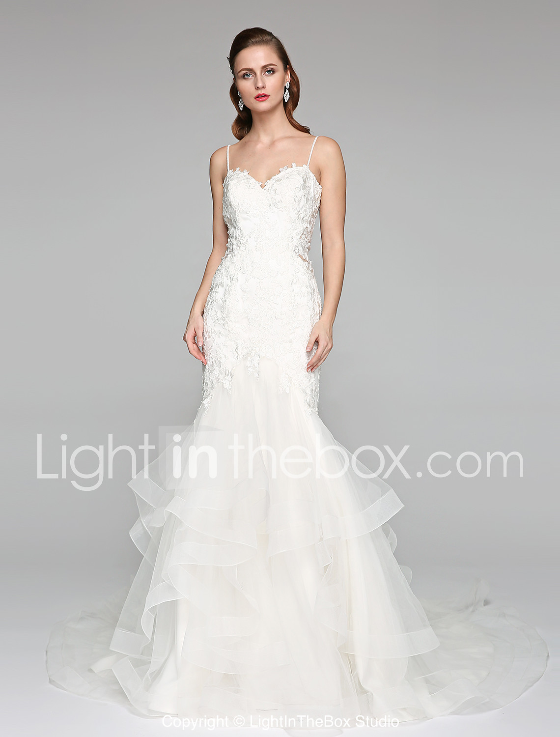 Trumpet Mermaid Sweetheart Court Train Tulle Lace Wedding Dress