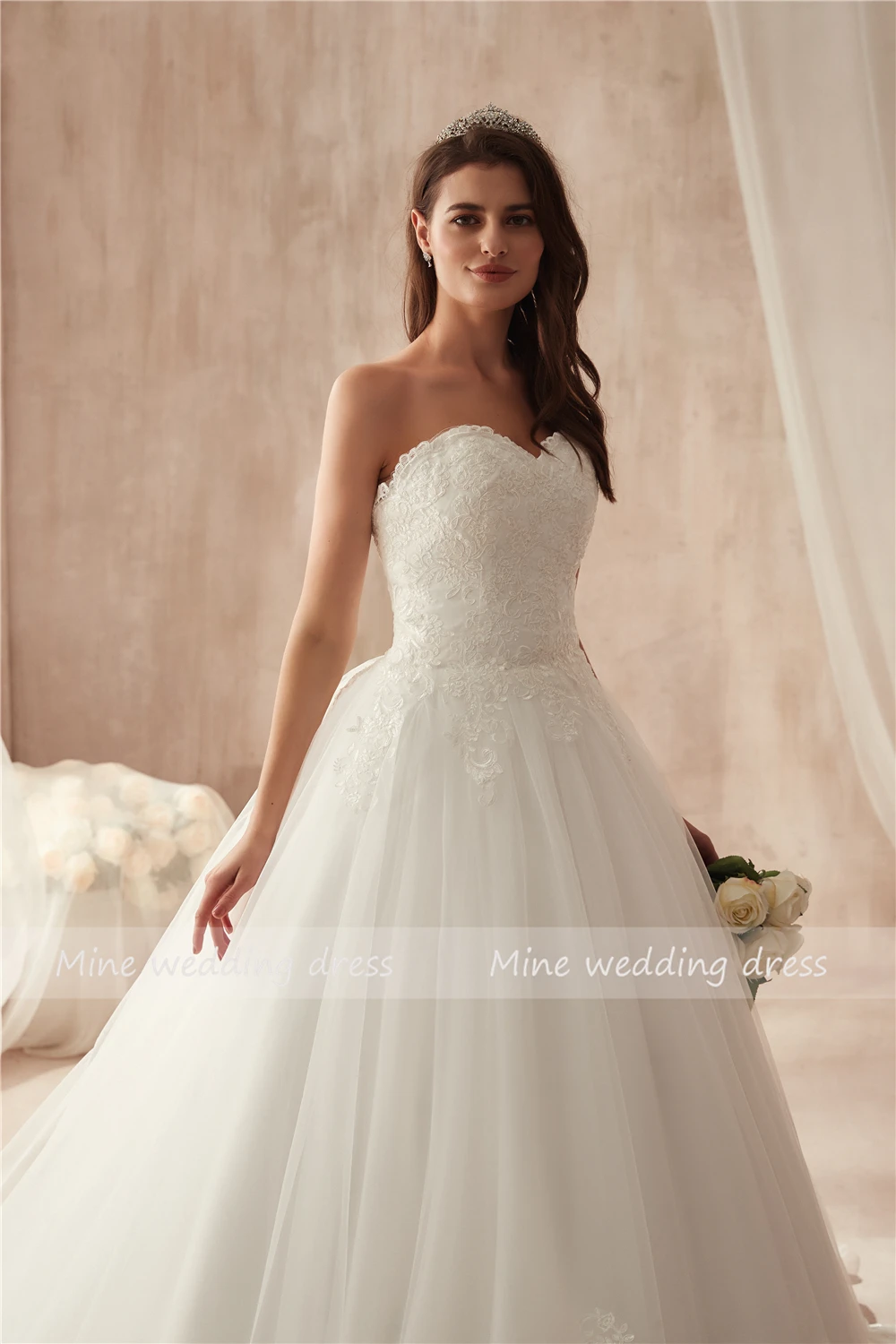 Ball Gown Strapless Tulle Wedding Dress Lace Fitted Bridal Dress