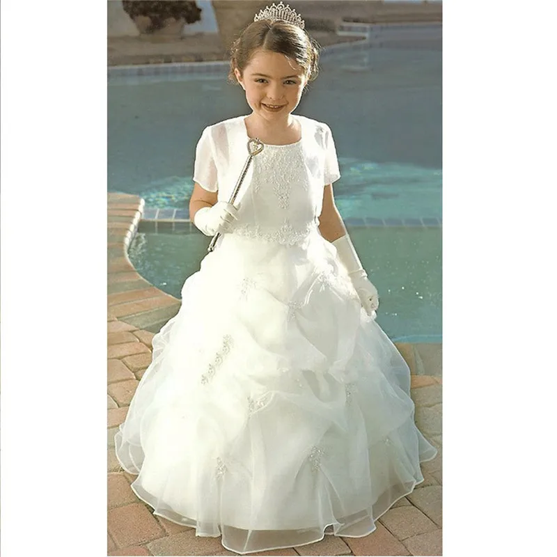 2015 Ball Gown Ruched Flower Girl Dress With Jacket Vestido