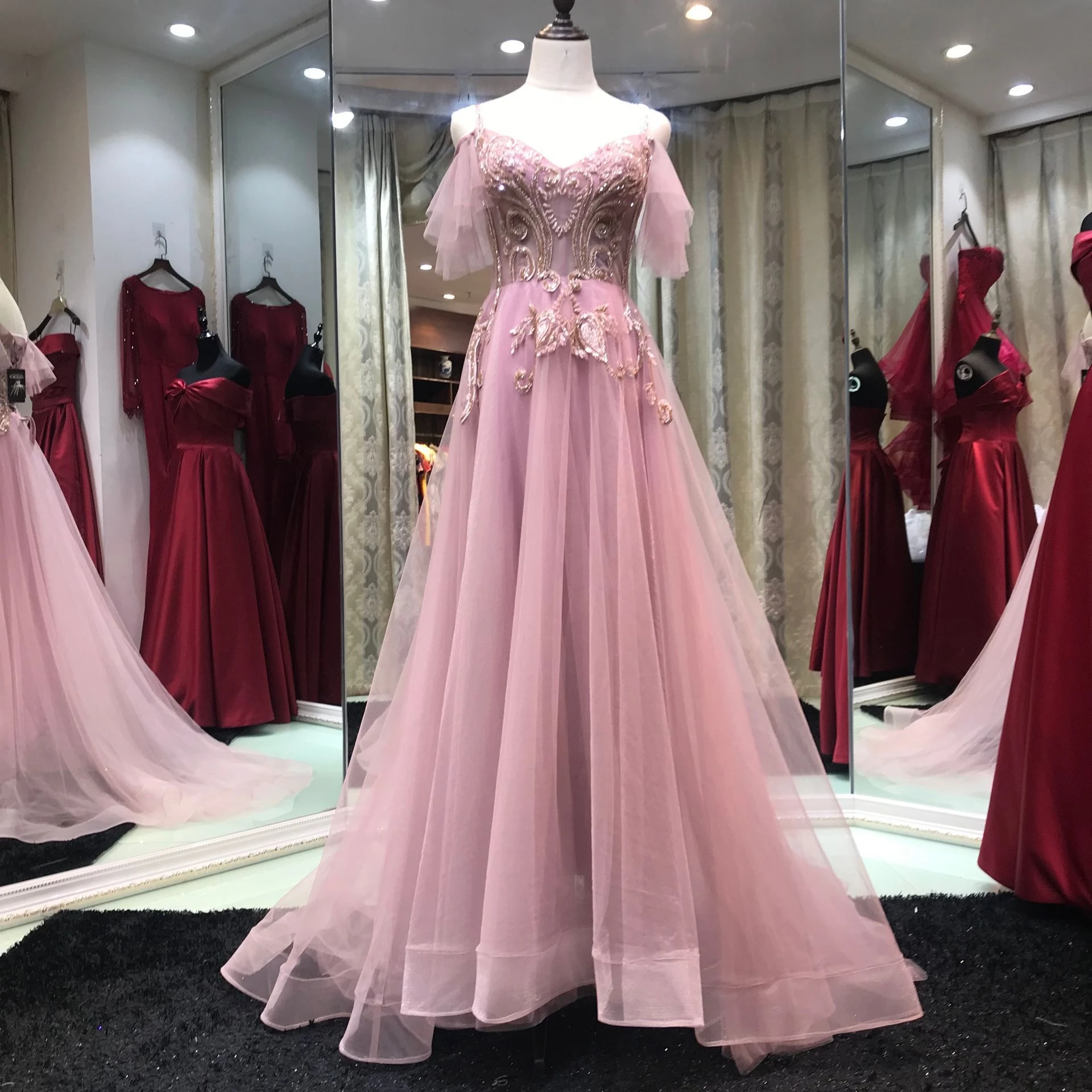 Sweetheart Spaghetti Strap Sleeve Pale Mauve Applique Ribbon Floor