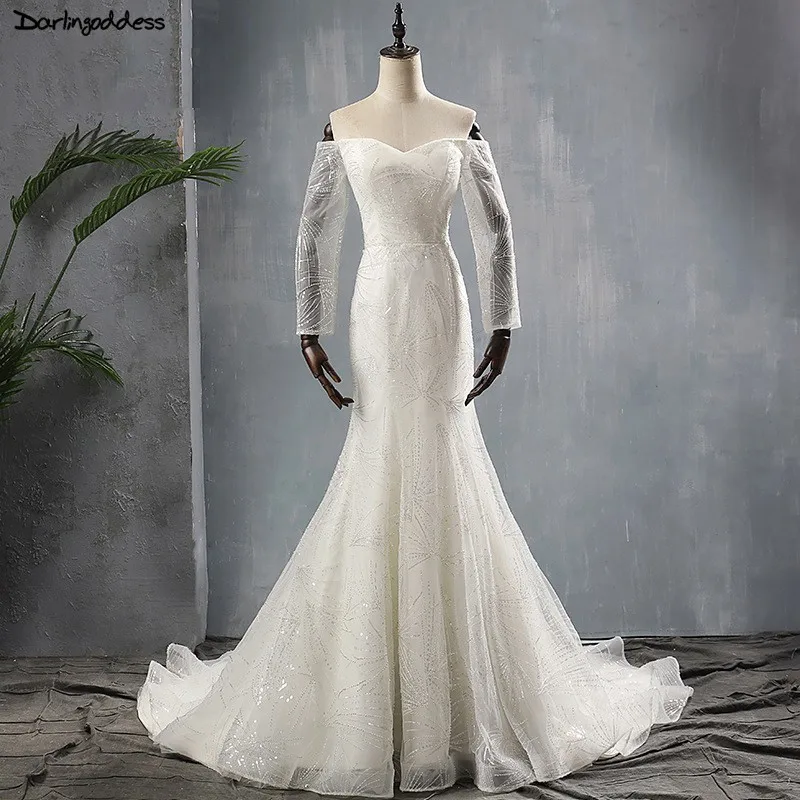 Long Sleeve Off Shoulder Mermaid Lace Custom Wedding Dresses
