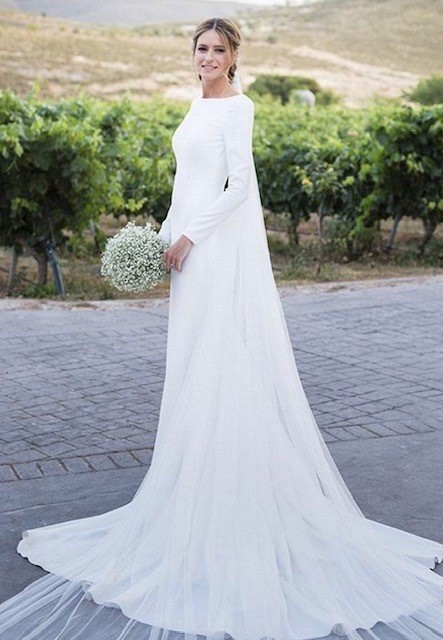 Long Sleeve Sheath Wedding Dresses Simple Modest Long Country