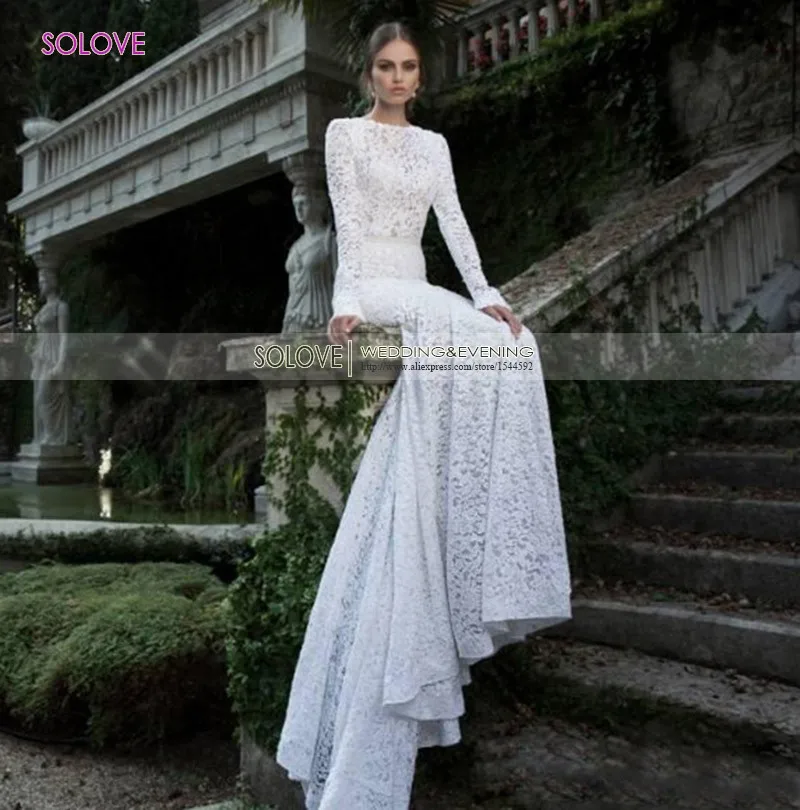 White Lace Long Sleeve Wedding Dress Gown Rb1035 Wedding For