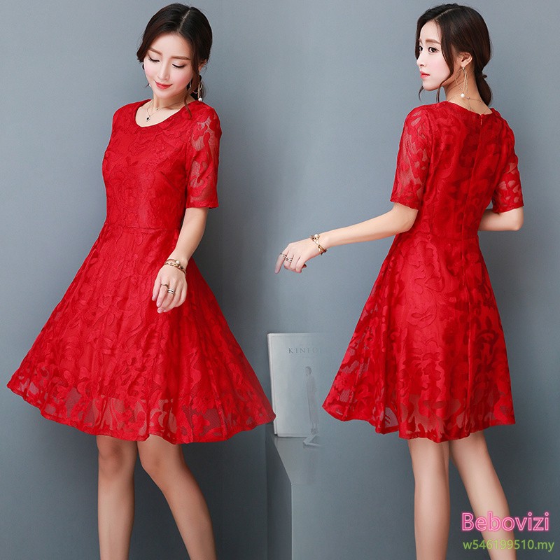 Plus Size Lace Dress For Women Summer Red Black Blue Casual