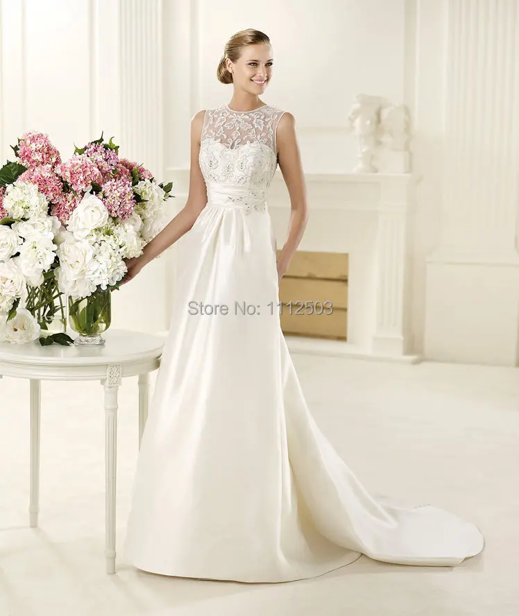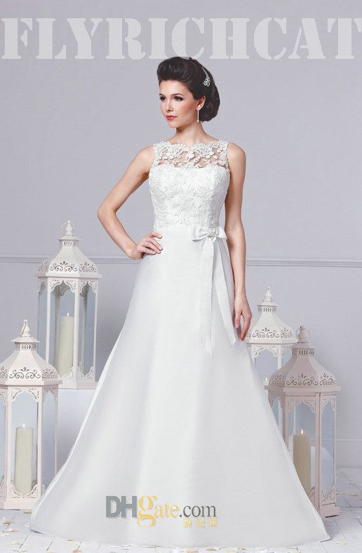 Discount Sleeveless Illusion Sabrina Neckline Bowknot Satin A Line