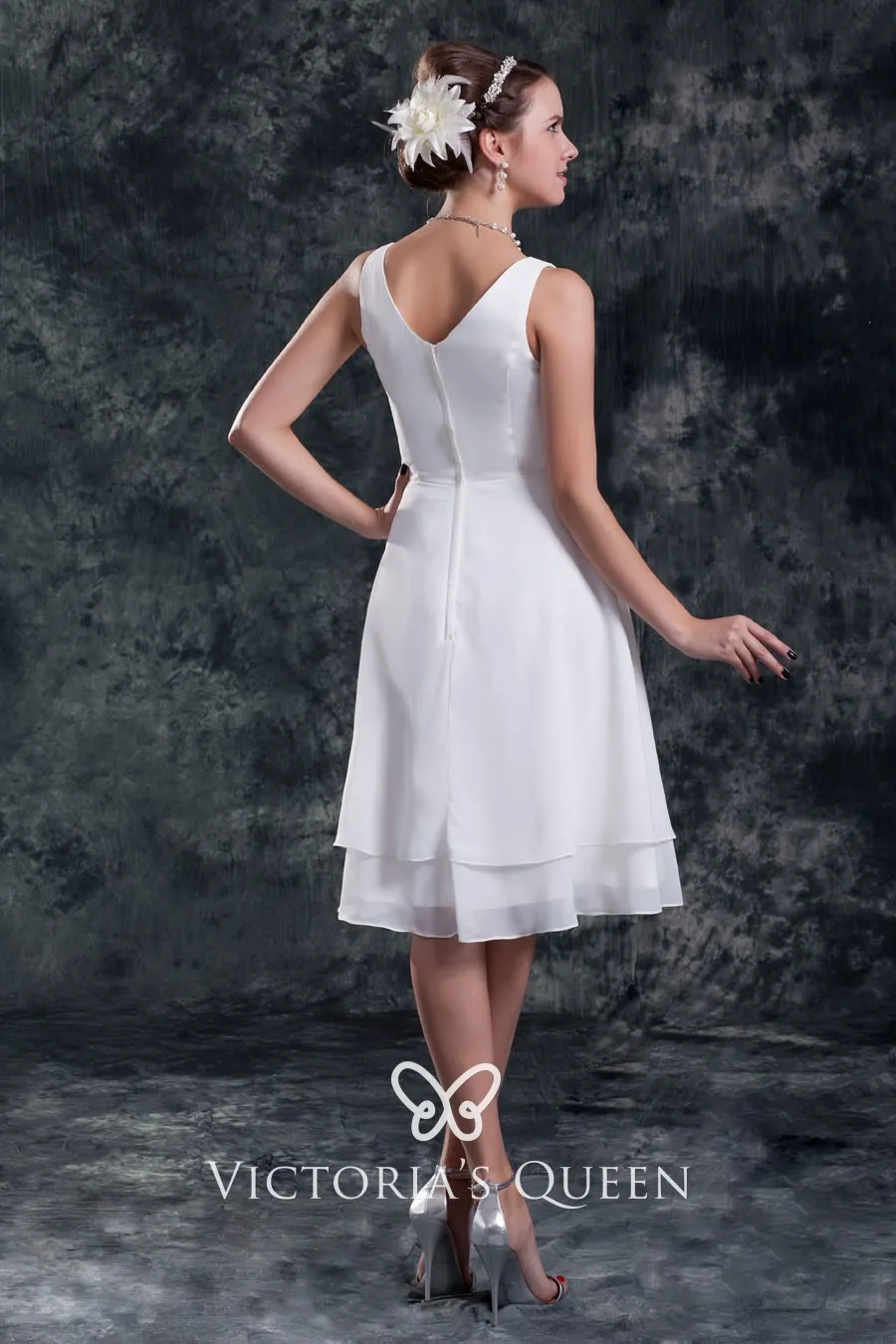 Simple White Tiered Chiffon Short Cheap Wedding Dress Vq