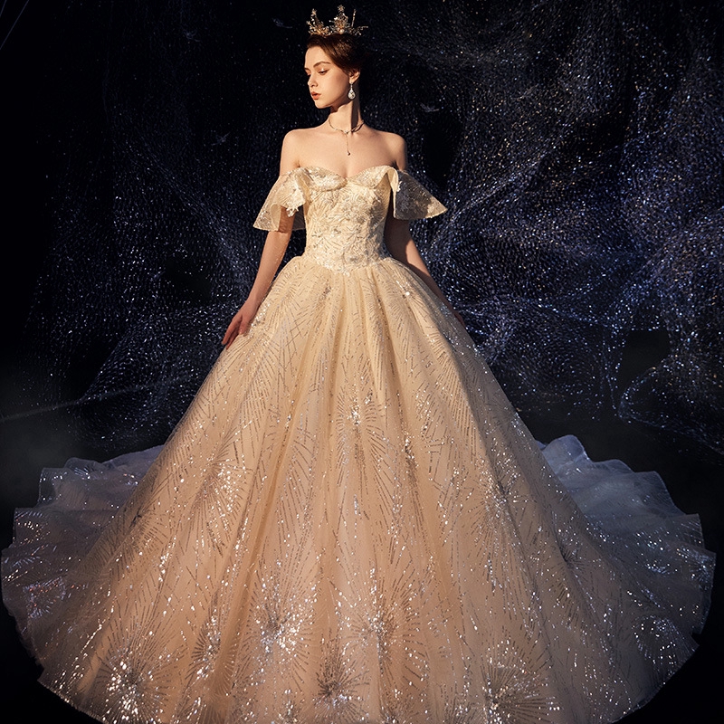 Starry Wedding Dress New Bride Trailing Luxury Strapless Retro