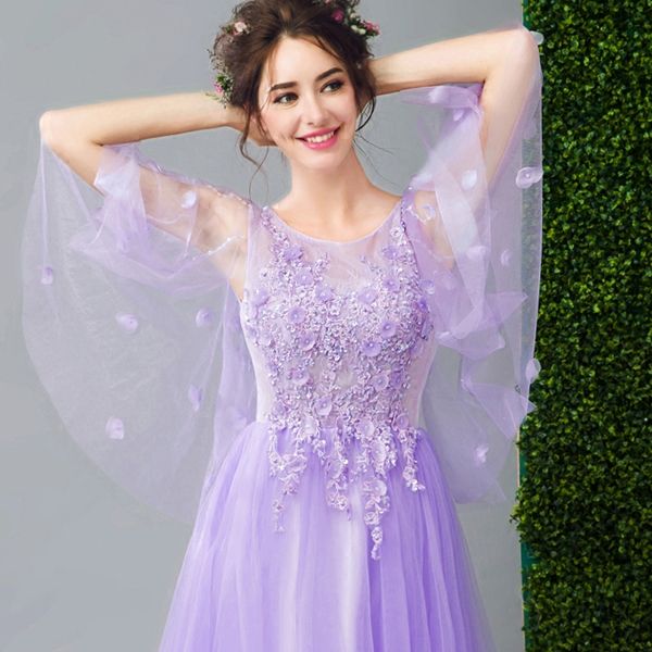 New Women S Sexy Wedding Dress Purple Lace Butterfly Sleeve Floor