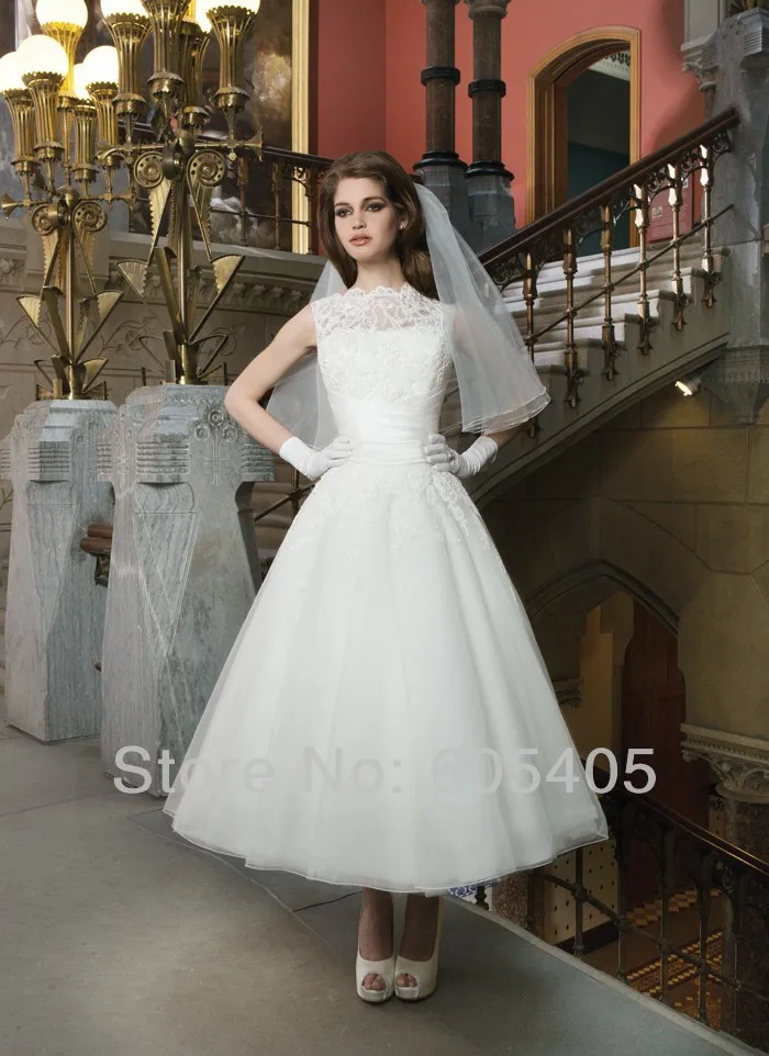 Luxury High Neck Mid Length Wedding Dresses Women 2015 Vestido
