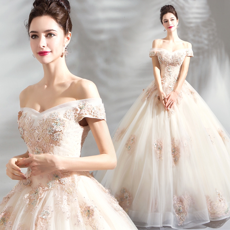 Princess Ball Gown Wedding Dresses Off Shoulder Lace Rhinestones