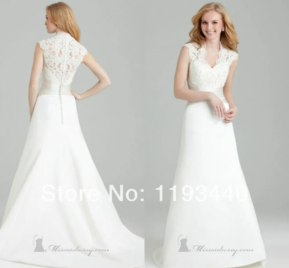 Sexy 2014 A Line Wedding Dresses V Neck Lace And Beads Appliques